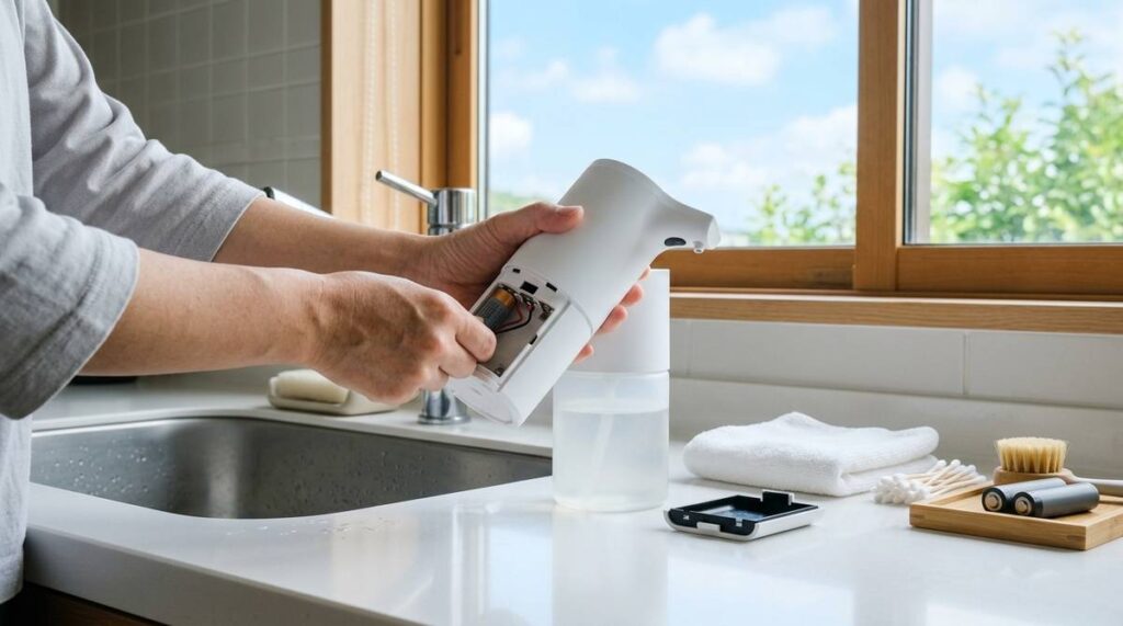 キレイキレイオートディスペンサーの直し方を知りたい方へ。センサーの反応不良やノズル詰まり 電池接触不良などの確認ポイントをわかりやすくまとめました。買い替え前に試したい対処法と注意点を今すぐチェックできます。 -