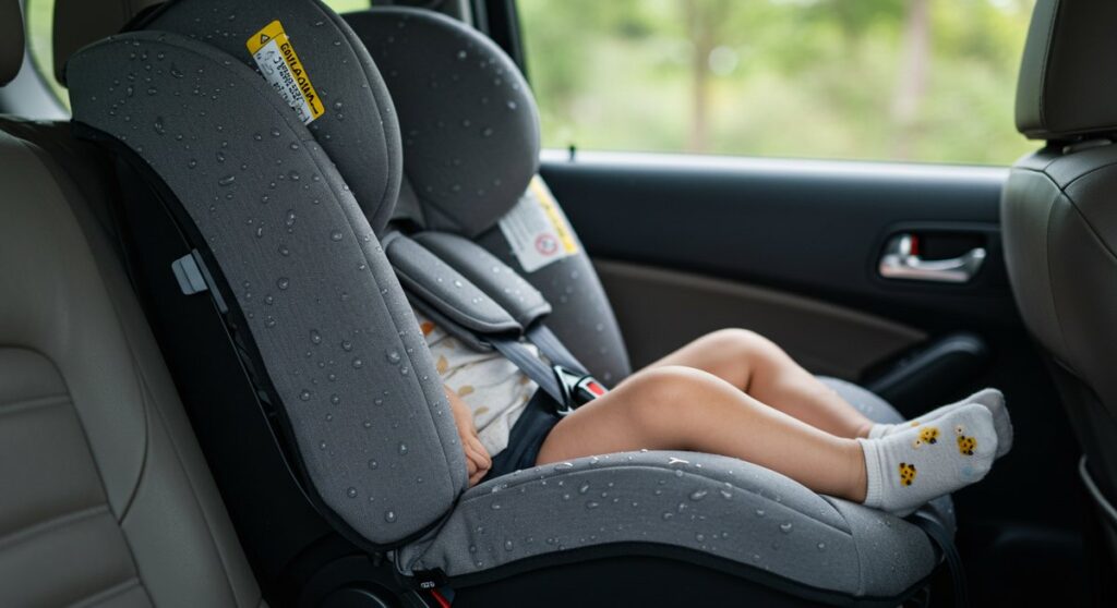 チャイルドシートでのお漏らし対策ガイド|防水シートの選び方と出先での応急処置
