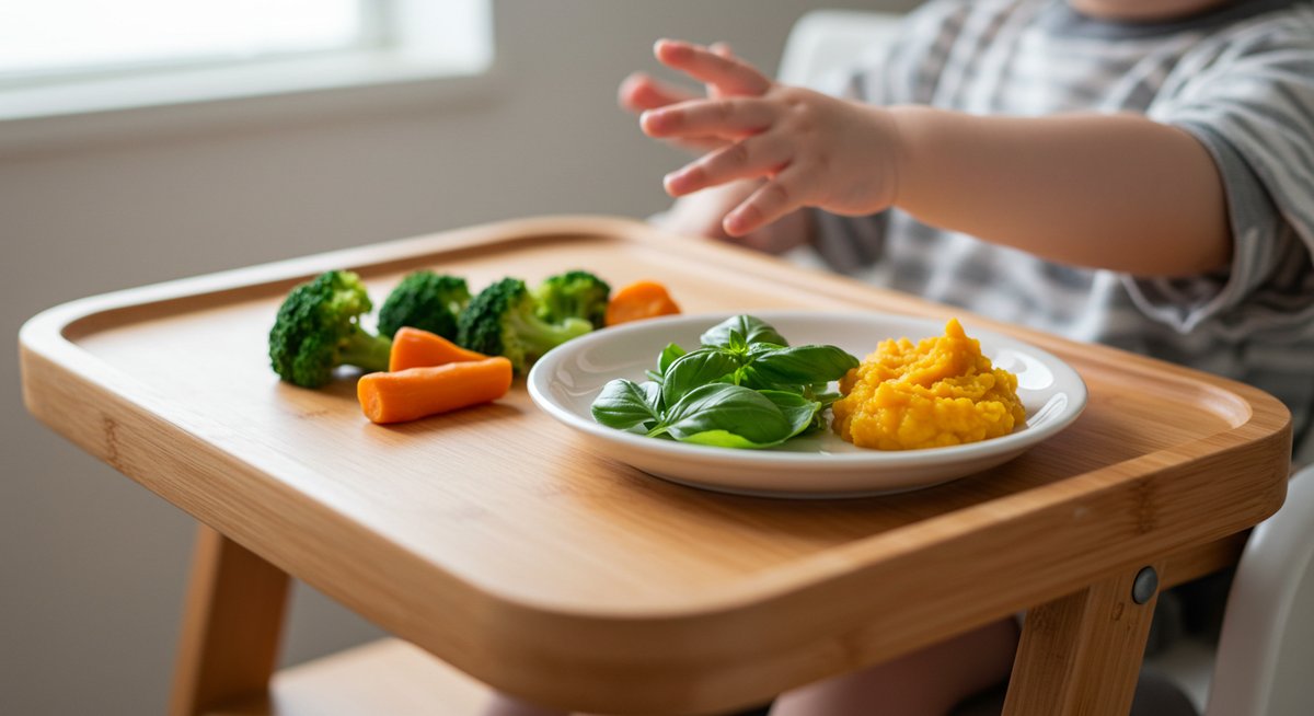 6〜8か月はまだ消化機能が未熟なのでバジルは控えめにしましょう。9〜11か月になってから少量ずつ導入するのが安全です。最初は果菜類や根菜のピューレにほんの少し刻んだバジルを混ぜ、風味付け程度に留めます。