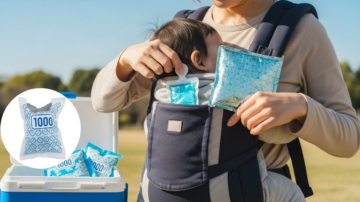 低温で凍らせた保冷剤は硬くなり、端が尖って破損の原因になることがあります。抱っこ紐に使う場合は柔らかめのジェルタイプや薄手の保冷剤を選ぶと安心です。固いものを使うときは布で厚めに包んでクッション性を持たせてください。