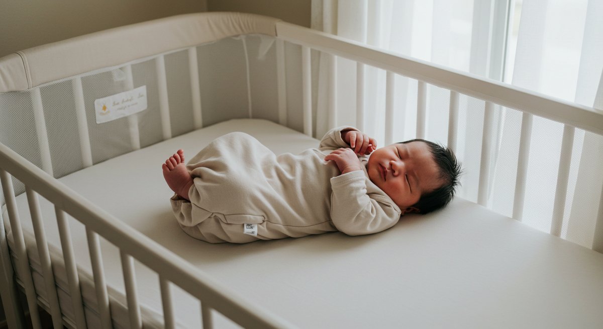 掛け布団を使わない場合でも、適切な服装やスリーパー(ベビードレス)で体温管理を行うことが重要です。ベッドや布団の硬さやフィット感もチェックしてください。寝具と柵の間に隙間があると顔や手が挟まる危険があるため、マットレスはサイズに合ったものを選びます。