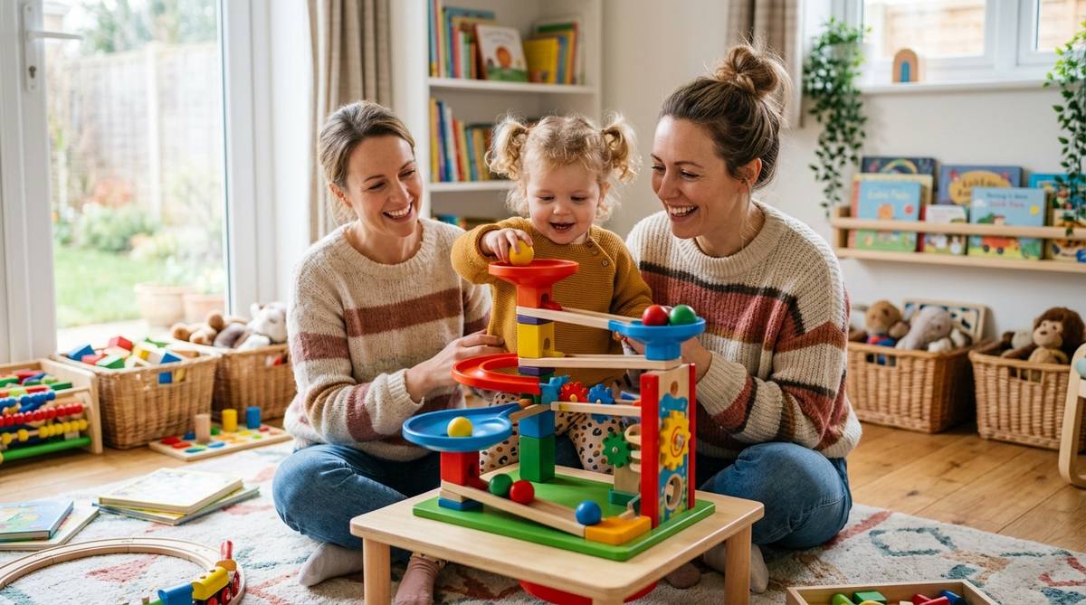 玉落としは、お子様一人でも集中して遊べる素晴らしいおもちゃですが、親が関わることでその学びはさらに深まります。コツは、親が正解を提示しすぎないことです。「こうすれば転がるよ」と教えるのではなく、「どうすればもっと速くなるかな?」と一緒に考える姿勢が大切です。