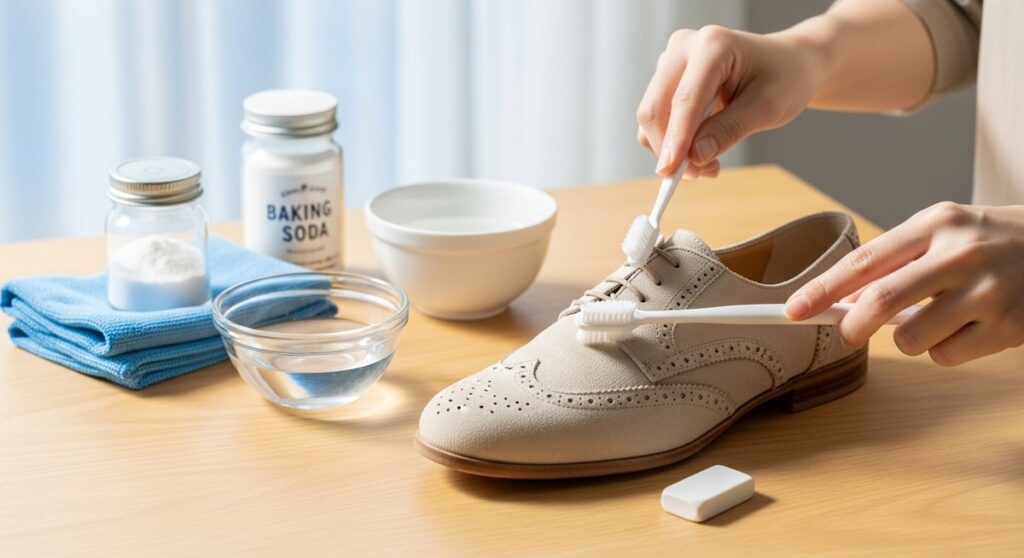 スウェード靴のホコリや油汚れ、水シミ、カビまで家にある道具で対処する手順をわかりやすく紹介します。準備や色落ち確認、ブラッシングや部分処理の順番、乾かし方まで順を追って解説します。応急処置やプロに任せたほうが良いケース、長持ちさせるケアも確認できます。 -
