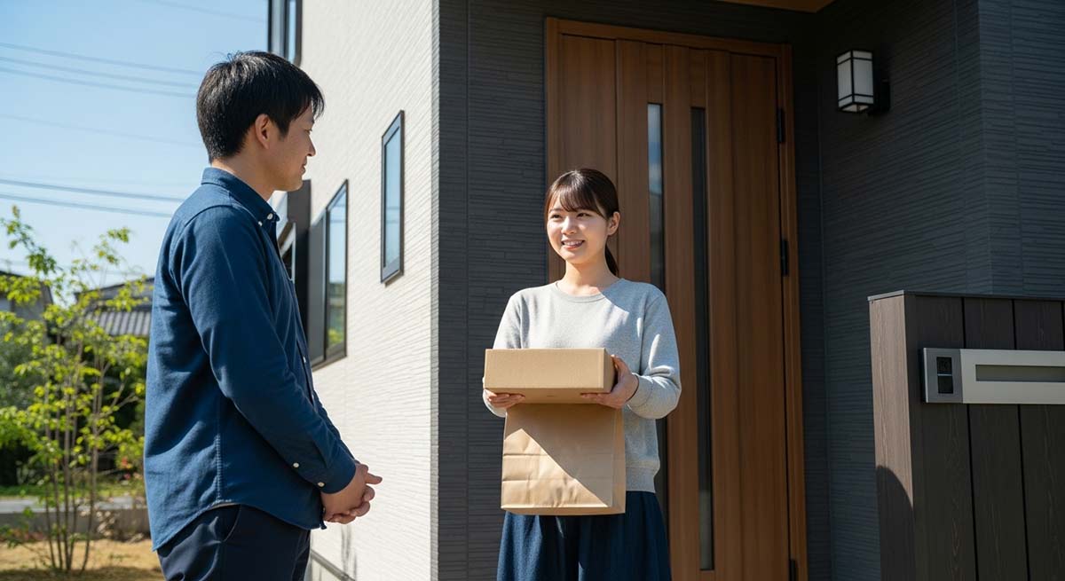 手土産を渡すタイミングは、玄関先ですぐに渡すのではなく、部屋に通されて挨拶を済ませた後がベストです。落ち着いてから「皆様でお召し上がりください」と添えてお渡ししましょう。
