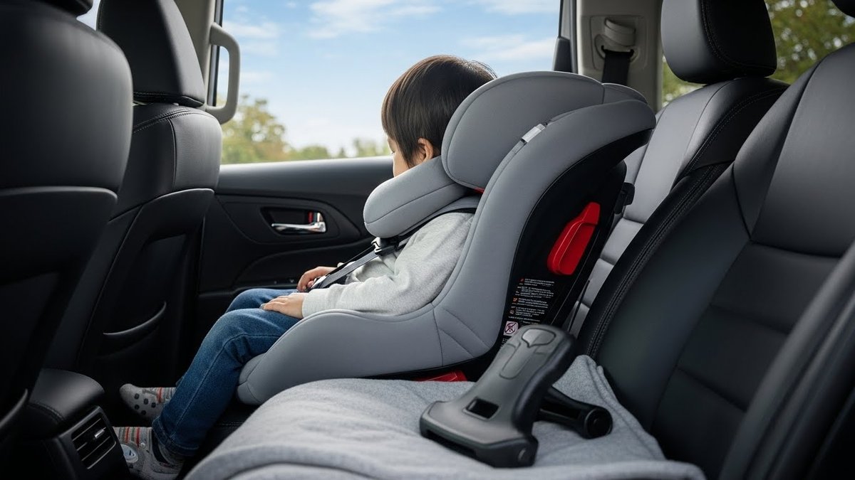 座席位置が遠すぎると子どもが前に滑る原因になります。シートの位置を適切に調整し、ヘッドレストが頭を支える位置にあるか確認してください。ヘッドレストは頭の側面と後頭部を支えるように高低を合わせると安定します。