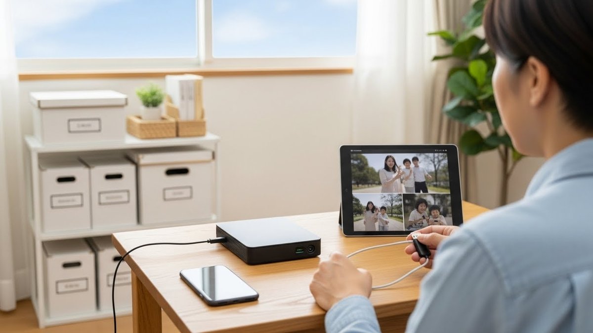 まずクラウドは手軽に共有でき、端末を越えて再生できる点が魅力です。回線や月額費用の影響を受けますが、遠隔地の家族と共有したい場合に特に便利です。一方、外付けHDDやNASはランニングコストを抑えつつ大容量を扱えるため、長期保存や高画質動画の保管に向いています。