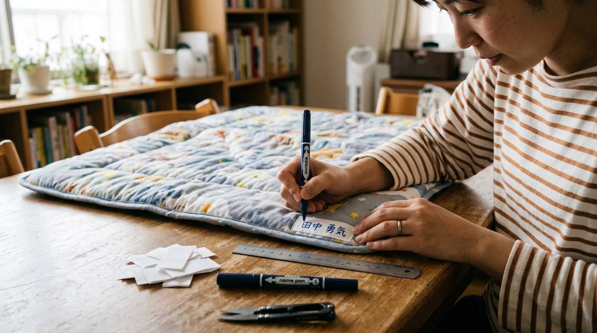 手書きは手軽な反面、名前を書くアイテム数が増えれば増えるほど、物理的な時間と労力が積み重なっていきます。布団本体だけでなく、掛け布団、敷き布団、それぞれのカバー、さらには収納袋まで、一式の名前書きを完璧にこなそうとすると、かなりの集中力を要します。特に新学期前の忙しい時期に、これらを全て手作業で行うのは大きな負担になり得ます。