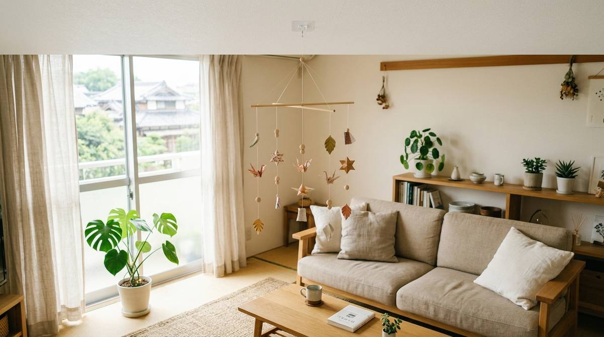 また、モビールは地面の面積を一切使わない「究極の省スペースインテリア」でもあります。床に物を置くとどうしても部屋が狭く感じてしまいますが、デッドスペースになりがちな天井付近を活用するモビールなら、部屋の広さを維持したまま装飾を楽しむことができます。ワンルームなどの限られた空間でも、上下の広がりを意識した飾り方をすることで、視覚的な開放感を得ることも可能です。住まいの条件に縛られず、自分の「好き」を形にできる自由は、暮らしの満足度を大きく引き上げてくれるに違いありません。