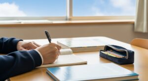通学や塾が中心で自宅では短時間の復習のみなら、大きな机は不要です。リビングのテーブルや折りたたみデスクで十分対応できます。家族の気配がある環境は短時間の学習にはむしろ向くこともあります。