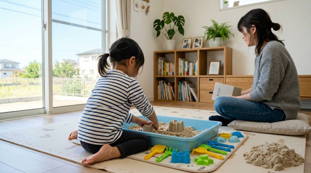 砂を握り、形を作り、壊す。このシンプルな繰り返しの中に、子供の集中力や手先の器用さ、そして豊かな感性が育まれていきます。外遊びが難しい日でも、お家の中にこうした夢中になれる空間があることは、育児において大きな助けとなるでしょう。また、大人にとっても、その独特の感触はストレス解消のリラックス効果があると言われています。ぜひ、お子様と一緒にその不思議な感触を楽しみながら、かけがえのない親子の時間を過ごしてください。