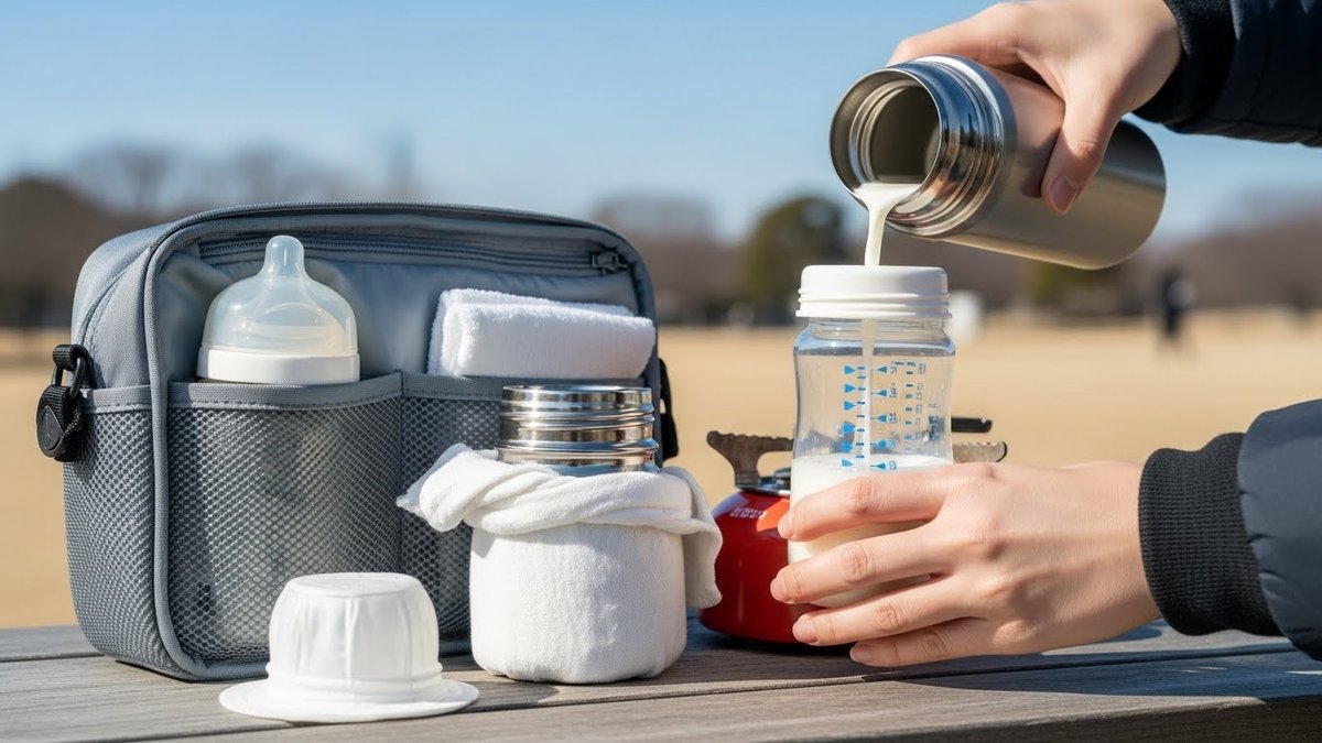 ちょっとした工夫で外出中のミルクづくりが格段に楽になります。出発前の準備から注ぎ方、保温配置、温度微調整まで、現場で使える方法を紹介します。