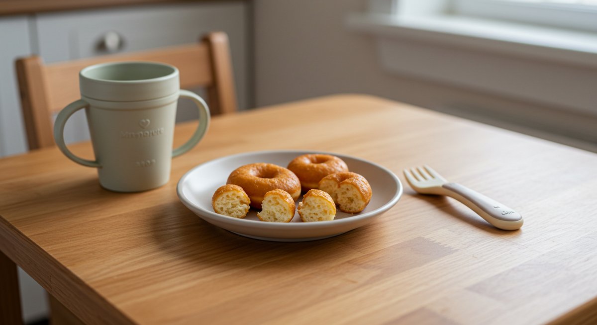 1歳児の間食は1日あたりの糖分やカロリーを考えて少量に留めることが重要です。ドーナツ一つを丸々与えるのではなく、ほんの数口分にして回数を減らす工夫をしましょう。