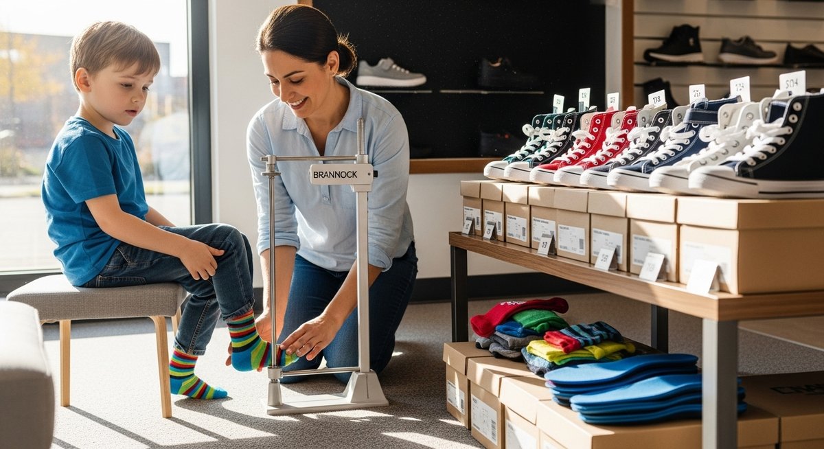試着の際は、普段お子さんがよく履いている靴下を必ず持参しましょう。夏場の薄いソックスと冬場の厚手のスポーツソックスでは、サイズ感がハーフサイズ(0.5cm)ほど変わってしまうこともあります。