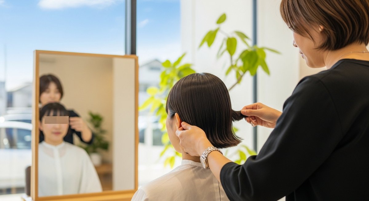 事前に美容師に髪の状態を見てもらい、具体的な長さやレイヤーの入れ方を決めましょう。必要なら部分的にすく、もしくは外側に流れるようなカットを加えるとバランスが取りやすくなります。鏡を使って角度ごとの見え方を確認することも忘れずに。